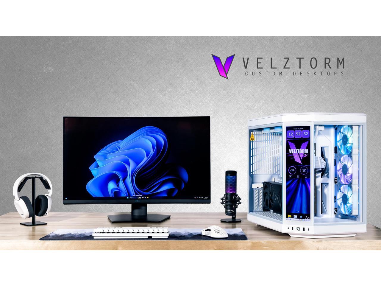 Velztorm LCD Praetix Custom Built Gaming Desktop PC (Intel i9-14900K, GeForce RTX 5070, 32GB DDR5, 2TB PCIe SSD, RGB Fans, 360mm AIO, 1000W PSU, WiFi 6, Bluetooth 5.2, RJ-45, Win 11 Pro)