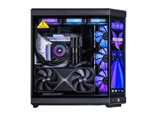 Velztorm LCD Black Praetix Custom Built Gaming Desktop PC (Intel i9-14900K, GeForce RTX 5070, 32GB DDR5, 2TB PCIe SSD, RGB Fans, 360mm AIO, 1000W PSU, WiFi 6E, Bluetooth 5.2, RJ-45, Win 11 Pro)