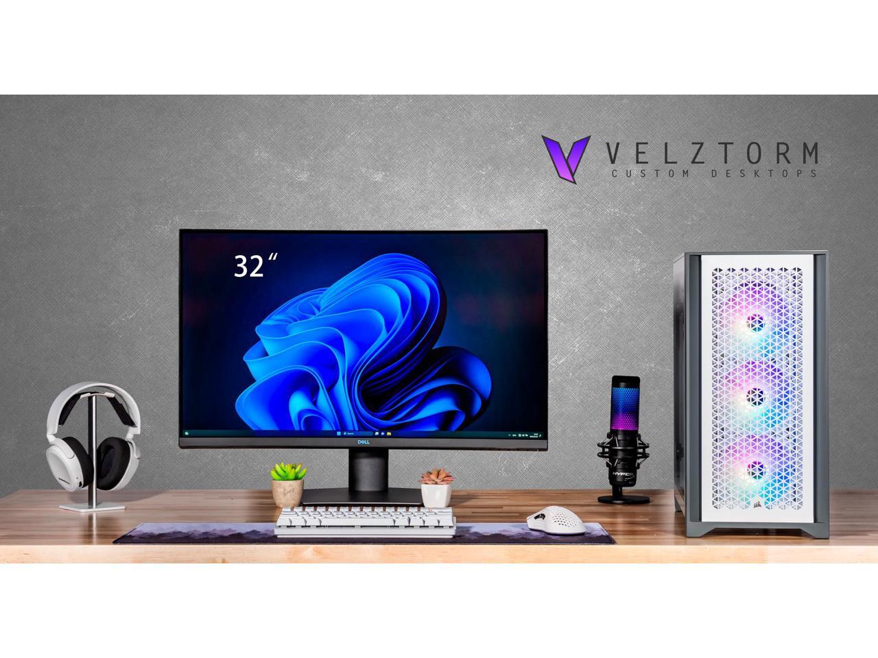 Velztorm iCUE Certified Argentux Custom Built Gaming Desktop PC (Intel i7-11700K, AMD Radeon RX 9060 XT, 32GB DDR4, 2TB PCIe SSD, RGB Fans, 240mm AIO, 750W PSU, WiFi 6, Bluetooth 5.1, Win 11 Pro)