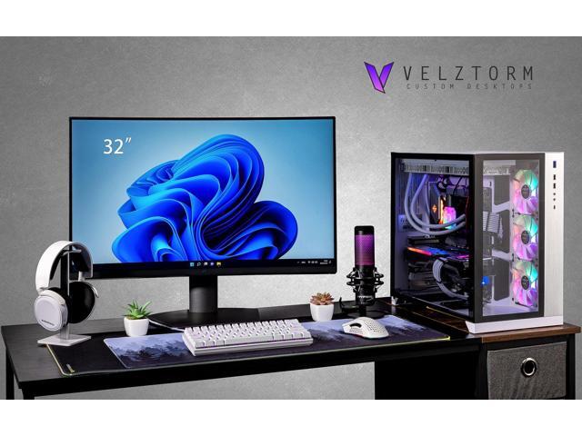 Velztorm Lux Gaming Desktop PC (AMD Ryzen 9 5950X, AMD Radeon RX 9060 XT, 32GB DDR4, 2TB PCIe SSD, 360mm AIO, 1000W PSU, RJ-45, 1 Display Port, HDMI, Win 11 Pro)