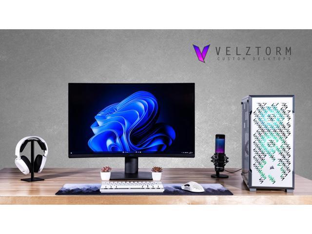 Velztorm White Fultix Custom Built Gaming Desktop PC (AMD Ryzen 5-5500, AMD Radeon RX 9060 XT, 32GB DDR4, 2TB PCIe SSD, RGB Fans, 750W PSU, WiFi 5, Bluetooth 4.2, RJ-45, HDMI, Win 11 Pro)