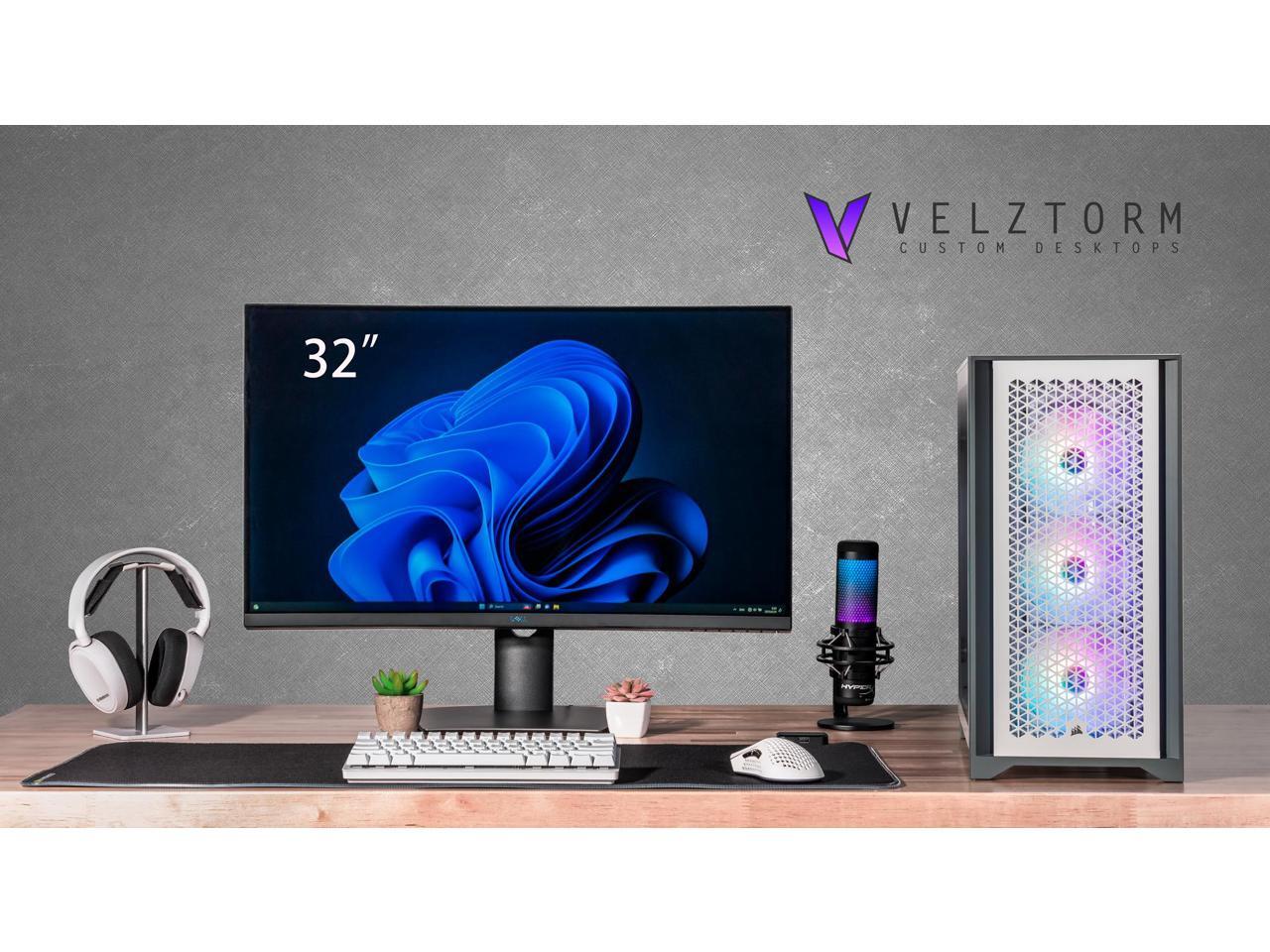 Velztorm iCUE Certified White Armix Custom Built Gaming Desktop PC (AMD Ryzen 9 7900X, Radeon RX 9070 XT, 32GB DDR5, 2TB PCIe SSD, RGB Fans, 240mm AIO, 1000W PSU, WiFi 6E, Bluetooth 5.2, Win 11 Home)