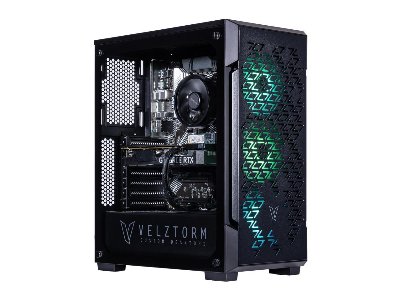 Velztorm Fultix Custom Built Gaming Desktop PC (AMD Ryzen 5-5500, AMD Radeon RX 9060 XT, 32GB DDR4, 1TB PCIe SSD, 750W PSU, WiFi 4, Bluetooth 4.2, RJ-45, HDMI, Win 11 Pro)