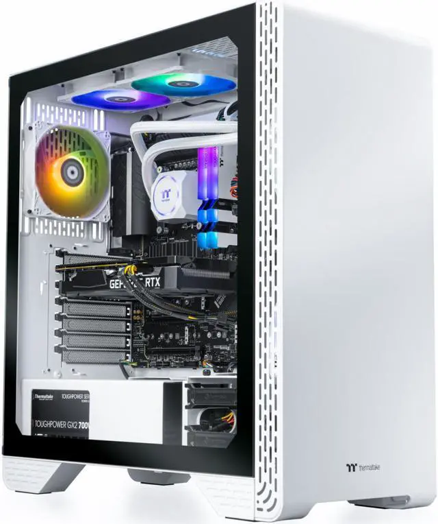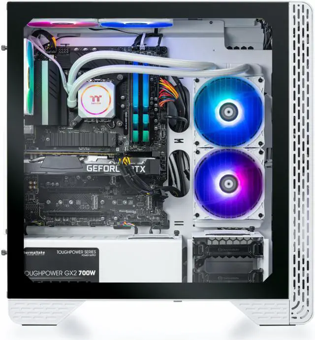 Dive into the depths of cooling with the Glacier 360 by LCGS. Utilizing a TT ARGB closed loop liquid cooler paired with TT ARGB fans to keep the Intel® Core i5-12600KF frosty for those extended play sessions. Experience the ultimate performance delivered by an NVIDIA® GeForce RTX 3060 Ti to push graphics and framerates to the limit. Leave SATA SSD performance behind with NVMe M. 2 speeds and 1TB of capacity.