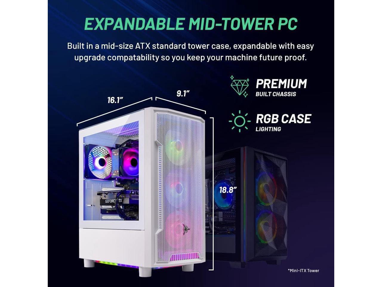 - AMD Ryzen 5 5600X 3.7GHz (4.6GHz Turbo Boost) CPU Processor | 1TB NVMe M.2 SSD Up to 30x Faster Than Traditional HDD | High-Performance Air Cooler NVIDIA Geforce RTX 4060 8GB GDDR6X Graphics Card (Brand may vary) | 16GB DDR4 RAM 3200 Gaming Memory with Heat Spreader | Windows 11 Home 64-bit| 802.11 AC | No Bloatware | Graphic output options include 1 x HDMI, and 1 x Display Port Guaranteed, Additional Ports may vary | USB Ports Including 2.0, 3.0, and 3.2 Gen1 Ports | HD Audio and Mic | Free Gaming Keyboard and Mouse| High-Performance Air Cooler: Maximum Airflow & ARGB Fans | Skytech Archangel Gaming Case - White Edition with Front Mesh | 1 Year Warranty on Parts and Labor | Lifetime Free Technical Support | Assembled in the USA