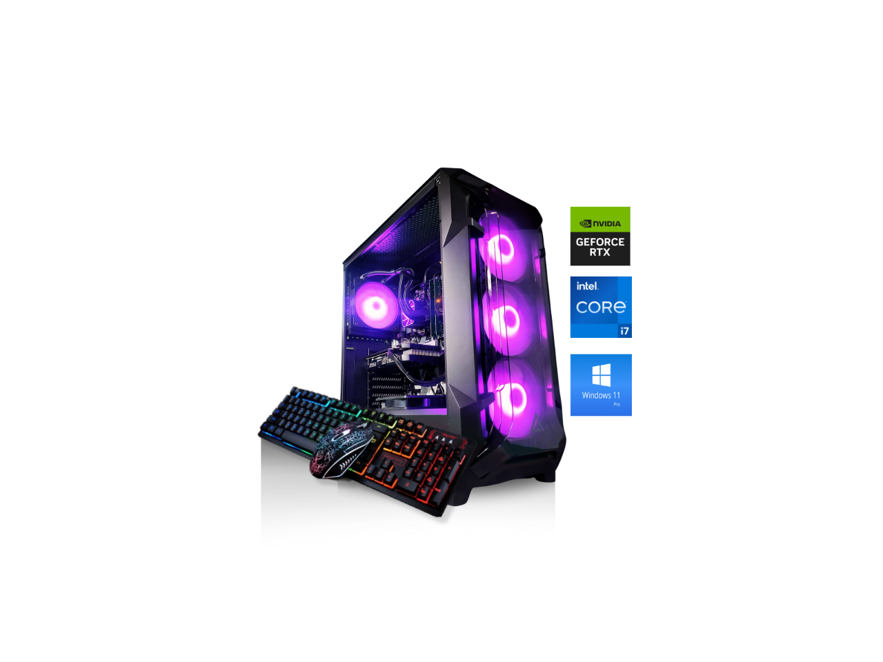 - Special Features: WIFI BT Included | Tempered Glass Side Case Panel | RGB Fan Controller | 4 Controllable RGB Fans | Gaming Keyboard + Gaming Mouse included.