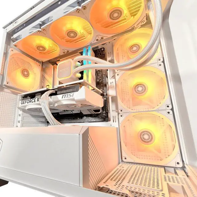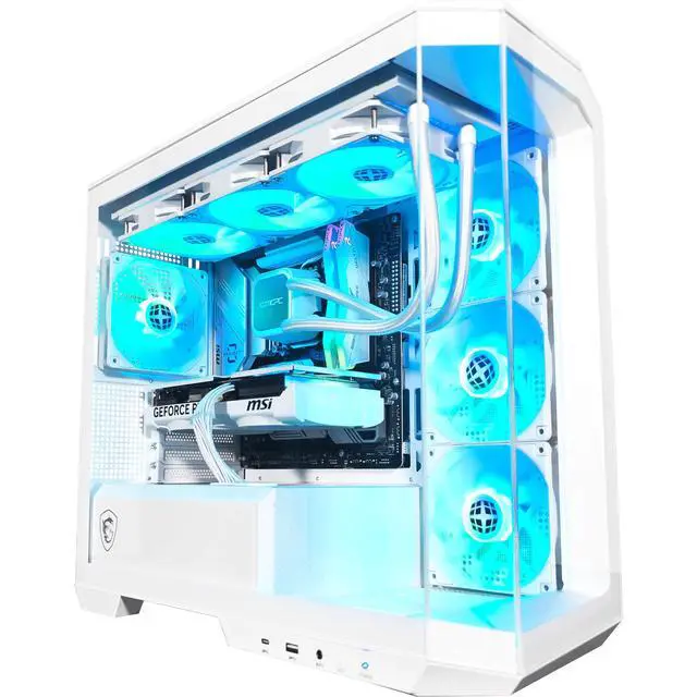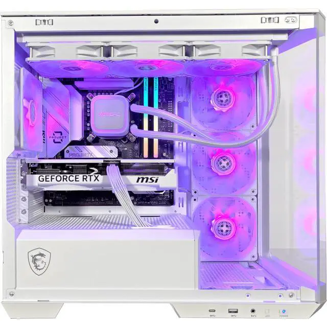 Keeping this rig cool is a 360mm AIO water cooler, supported by four pre-installed ARGB fans, including three reverse-blade side fans for maximum airflow and lighting brilliance. The integrated 1-to-4 ARGB-PWM control board lets you fine-tune the aesthetics and performance to match your vibe. Powering it all is the MSI MPG 750W GOLD PSU, delivering rock-solid reliability.