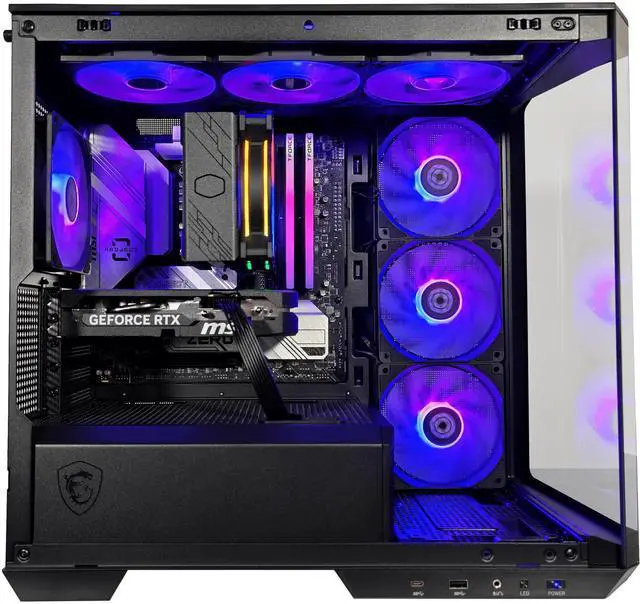 Power meets polish in the Project Zero Pano. Housed in MSI?s sleek MAG PANO M100R chassis with 270 panoramic glass, this mid-tower build is made to show off. The back-connect motherboard design keeps cables hidden, while four vibrant ARGB fans (three with reverse blades) deliver both airflow and style. Inside, an Intel Core? i5-14600Kprocessor and NVIDIA GeForce RTX? 5060 graphics card provide smooth, high-performance gameplay and multitasking. Packed with 32GB of ultra-fast DDR5 memory, 2TB of Gen 4 NVMe storage, Wi-Fi 6E, and Bluetooth 5.3, it's built to play hard and look good doing it. Simple to upgrade, easy to manage, and backed by a lifetime warranty?this rig is ready for center stage.