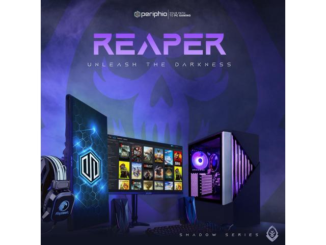 Periphio Reaper Gaming PC Computer - AMD Ryzen 5 5600G, Radeon Vega 7 Graphics, 1TB NVMe Solid State, 16GB DDR4 RAM, Windows 11 Gaming Desktop Tower + RGB Elite 4-in-1 Bundle and RGB Speakers