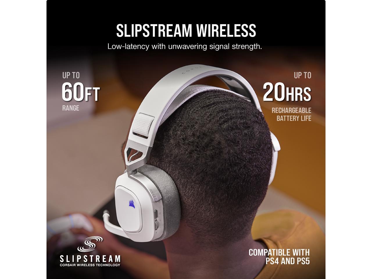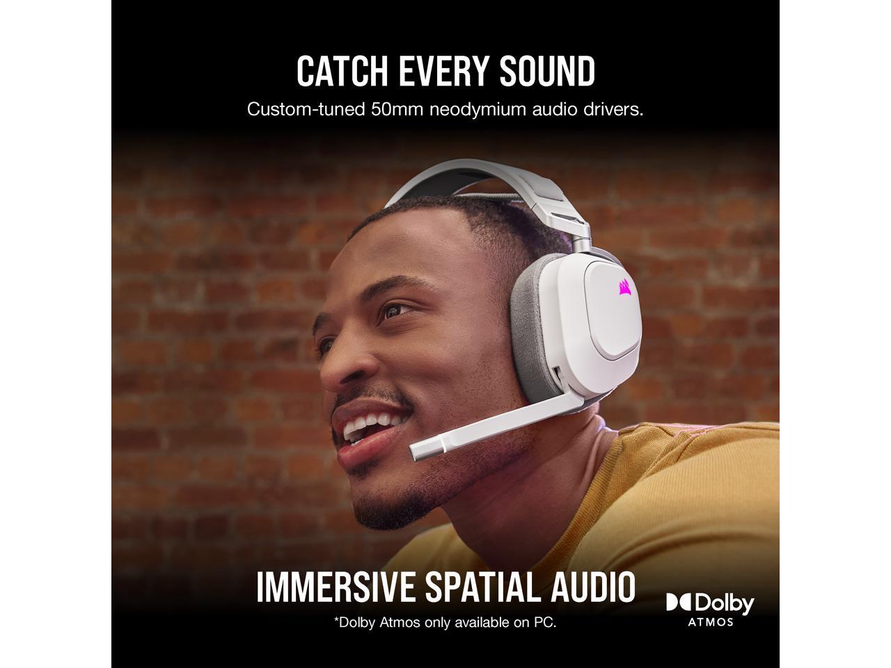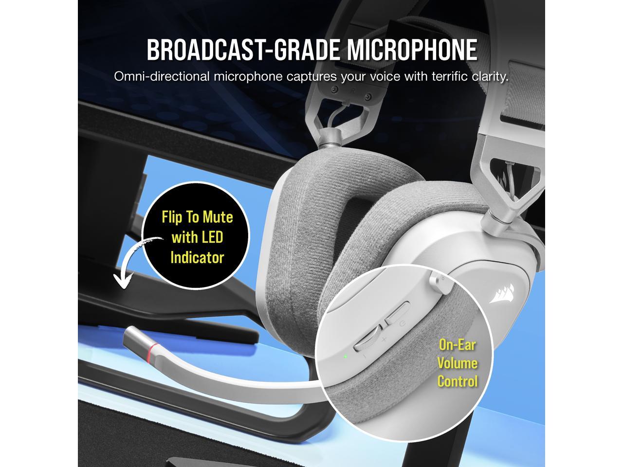 Corsair HS80 RGB Wireless Premium Gaming Headset with Dolby Atmos Audio (Low-Latency, Omni-Directional Microphone, 60ft Range, Up to 20 Hours Battery Life, PS5/PS4 Wireless Compatibility) White