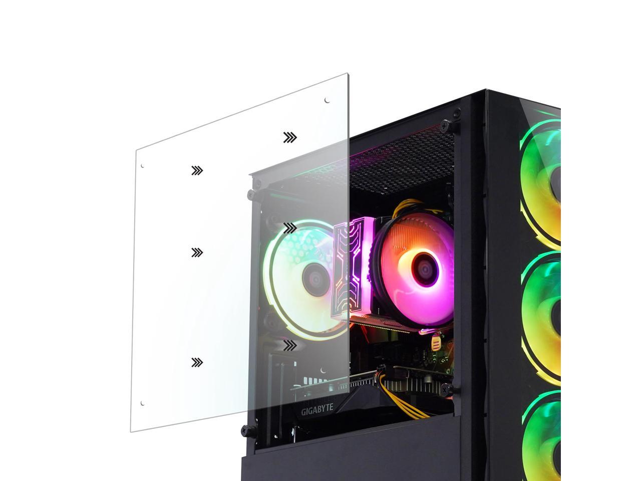 The aesthetically impressive case is designed with a glass front panel, adding a touch of elegance to your gaming setup.