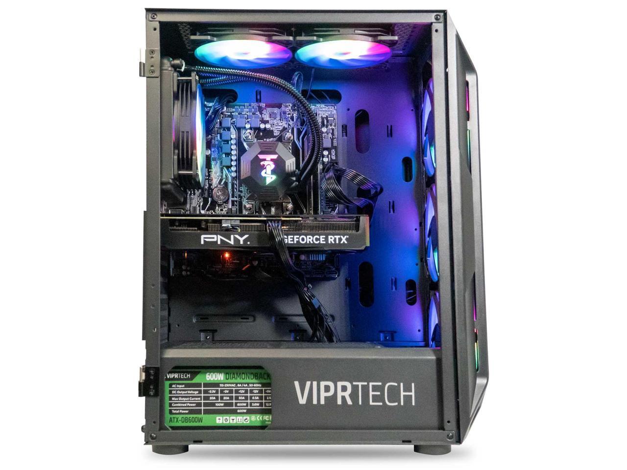 ViprTech Ghost 3.0 Liquid-Cooled PC - AMD Ryzen 5 5600X (4.6Ghz Turbo), RTX 5060 8GB, 16GB DDR4, 1TB SSD, VR-Ready, Streaming, RGB, Windows 11, Gaming Desktop Computer, Black
