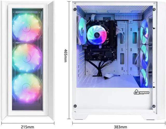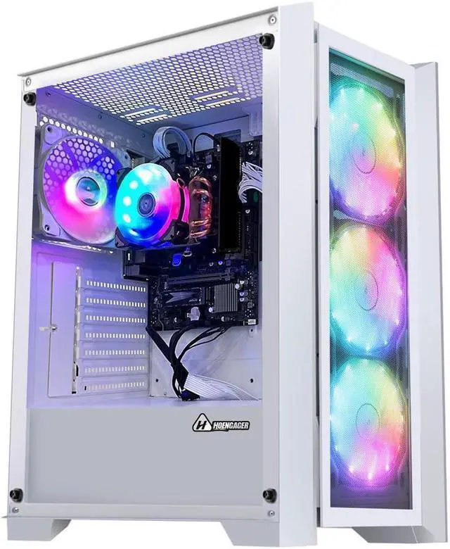 Hoengager Apollo Gaming Desktop PC - AMD Ryzen 5 5600G 6-Core 3.9GHz- 32GB DDR4 3200MHz - 1TB M.2 +2TB SATA SSD- WIFI & Bluetooth 5.0 -RGB Fans - Windows 11 Pro Desktop Computer