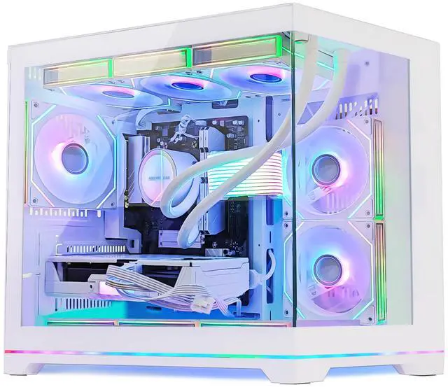 Hoengager Gaming PC -AMD Ryzen 5 9600X 6-Core 3.9GHz-RTX 5060 8GB-32GB DDR5 RAM-1TB PCIe+1TB SATA SSD-360 Liquid Cooler -WIFI &Bluetooth-850W PSU -ARGB Fans-Windows 11 prebuilt Gaming Desktop PC-White
