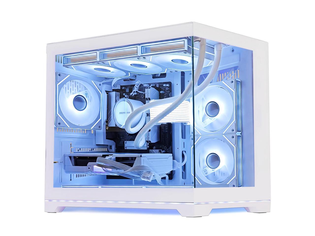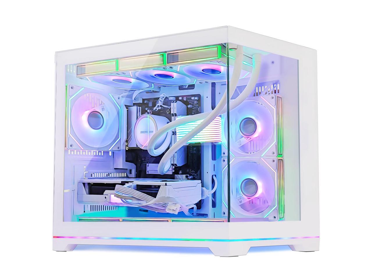 Hoengager Gaming PC -AMD Ryzen 5 9600X 6-Core 3.9GHz-RTX 5060 8GB-32GB DDR5 RAM-1TB PCIe+1TB SATA SSD-360 Liquid Cooler -WIFI &Bluetooth-850W PSU -ARGB Fans-Windows 11 prebuilt Gaming Desktop PC-White