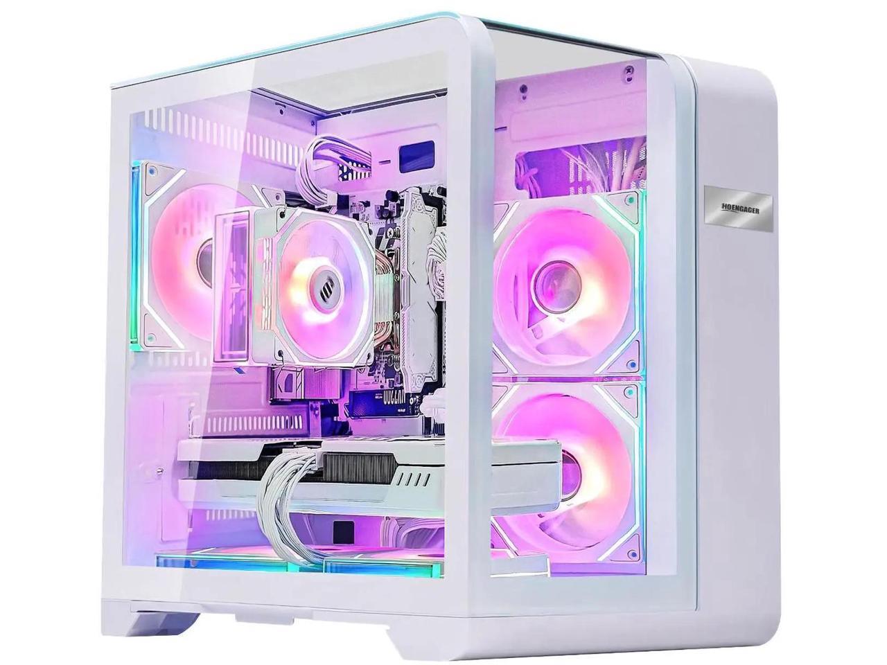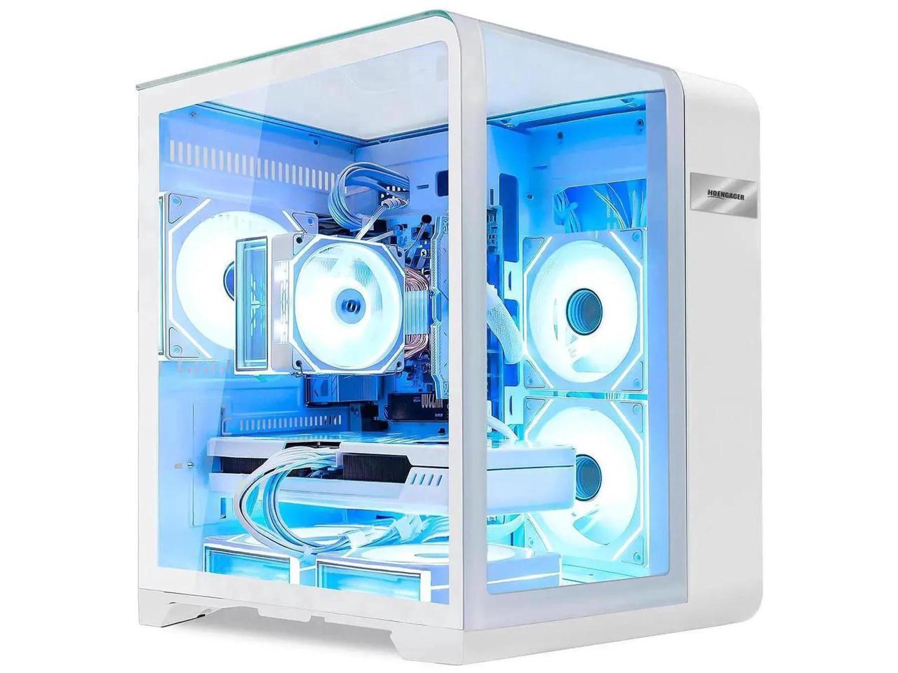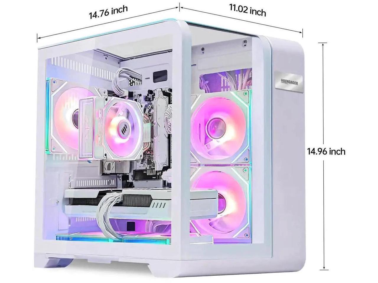 Hoengager Astral Mini Gaming PC -AMD Ryzen 7 7700 8-Core 3.8 GHz-RTX 5060 8GB -32GB DDR5 6000MHZ RAM-1TB PCIe SSD -WIFI &Bluetooth -RGB Fans-Prebuilt PC Windows 11 Desktop 650W PSU-White