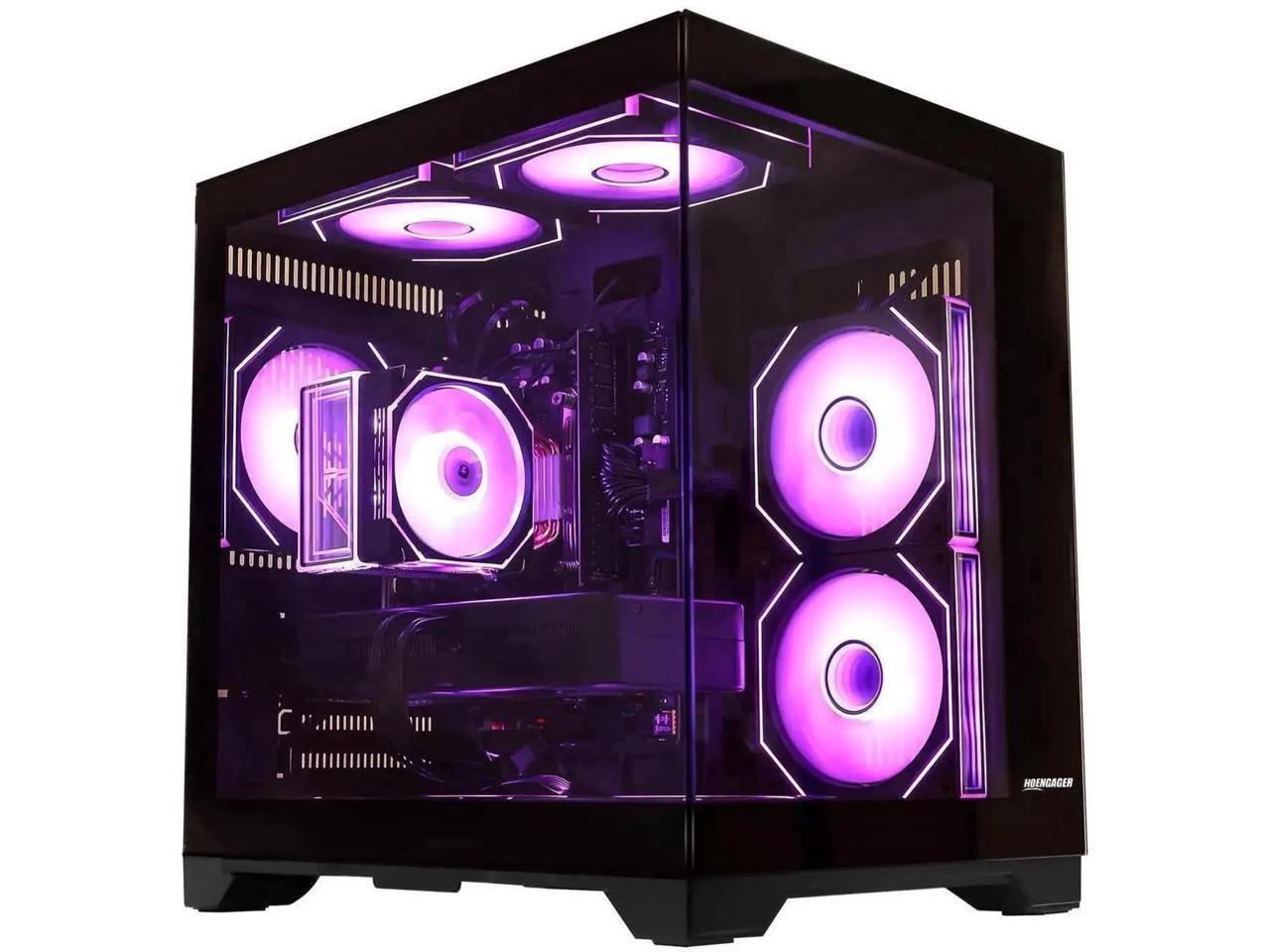 Hoengager Gaming Desktop Intel Core i5-13400F 2.5 GHz 10 Core, AMD Radeon RX 9060 XT 16GB , 32GB DDR4 RAM 3200MHz,1TB PCIe +2TB SATA SSD, Wi-Fi & Bluetooth ,Win 11 Pro Prebuilt RGB Computer-Black