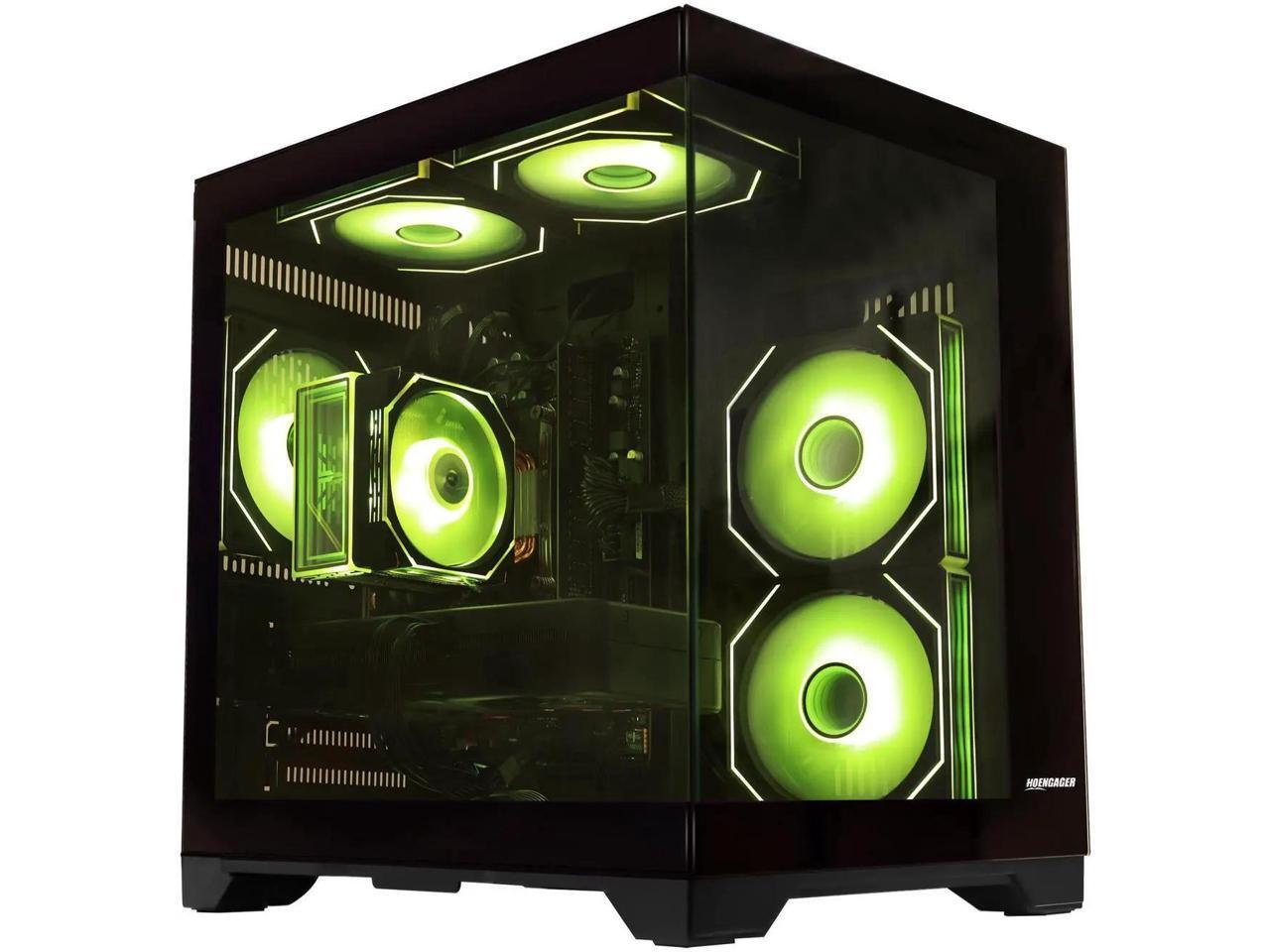 Hoengager King Gaming Desktop AMD Ryzen 5 5500 6-Core 3.6 GHz,Radeon RX 9060XT 8GB, 32GB DDR4 3200MHz RAM ,1TB PCIe SSD ,RGB FAN ,WiFi &Bluetooth Windows 11 prebuilt Gaming PC