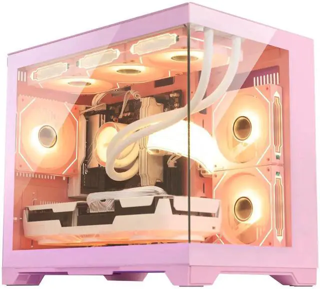 Hoengager RTX 5070 TI 16GB Gaming PC-AMD Ryzen 5 9600X 6-Core 3.9GHz, 32GB DDR5 6000MHz RAM, 1TB PCIe +1TB SATA SSD,WiFi + BT,360 ARGB Liquid cooler, Win 11,850W PSU-RGB Prebuilt Desktop Computer-Pink