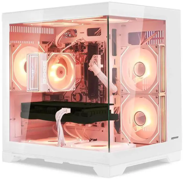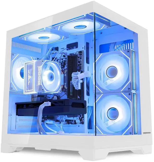 Hoengager King Gaming Desktop AMD Ryzen 5 5500 6-Core 3.6 GHz,GeForce RTX 5050 8GB, 16GB DDR4 3200MHz RAM ,1TB PCIe+1TB SATA SSD ,RGB FAN ,WiFi &Bluetooth Windows 11 prebuilt Gaming PC-White