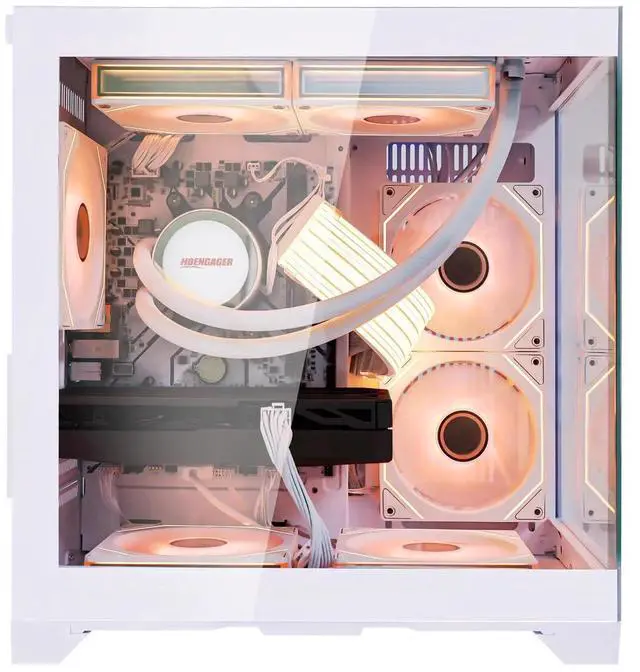Hoengager Gaming PC AMD Ryzen 7 5700X 8-Core 3.4 GHz, RTX 5050 8GB, 32GB DDR4 RAM 3200MHz,1TB PCIe +1TB SATA SSD, WIFI&Bluetooth, 650W PSU, Windows 11 -White