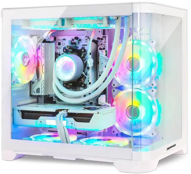 Hoengager RX 9060 XT 16GB Gaming PC -AMD Ryzen 5 9600X 6-Core 3.9GHz, 16GB DDR5 6000MHZ RAM, 1TB PCIe +1TB SATA SSD, WiFi + BT, 650W PSU,240AIO Liquid cooler, Win11-RGB Prebuilt Desktop Computer-White