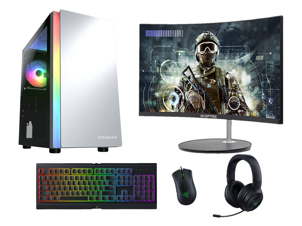 Gaming Computer Bundle | RTX 2060 12GB | i5 | Windows 11 Pro | 16GB RAM | 1TB SSD | Curved Monitor & Razer Keyboard, Mouse, and Headset | Wi-Fi
