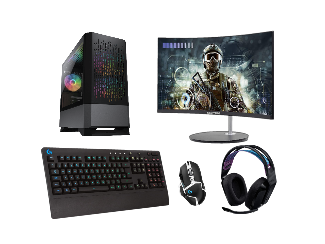 Gaming Computer Bundle | RTX 2060 12GB | Ryzen 5600 | 16GB RAM | 1TB SSD | Curved Monitor & Logitech Keyboard, Mouse, and Headset