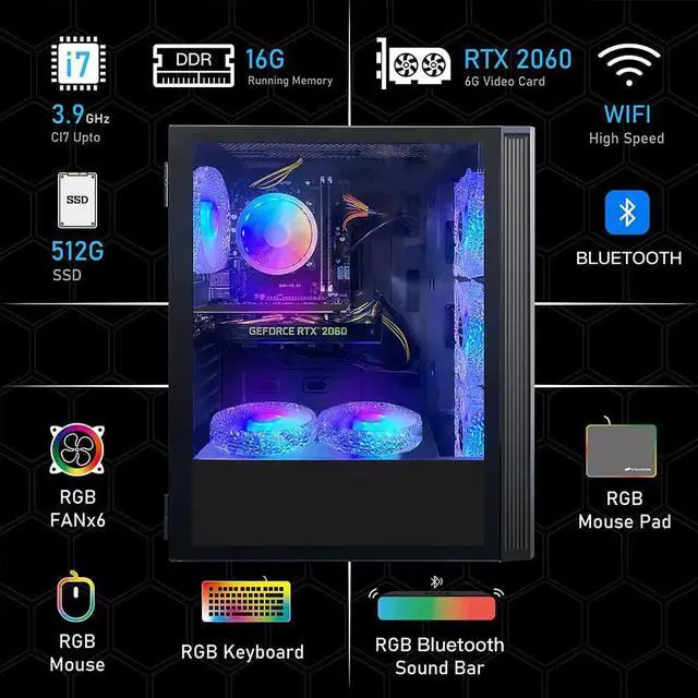 The chassis is equipped with 6 RGB high-volume fans, and the maximum wind pressure of 2.7mmH20 can effectively reduce the ambient temperature in the chassis, thereby effectively assisting the cooling of the original components such as the CPU and graphics card, Bringing you a better gaming experience.