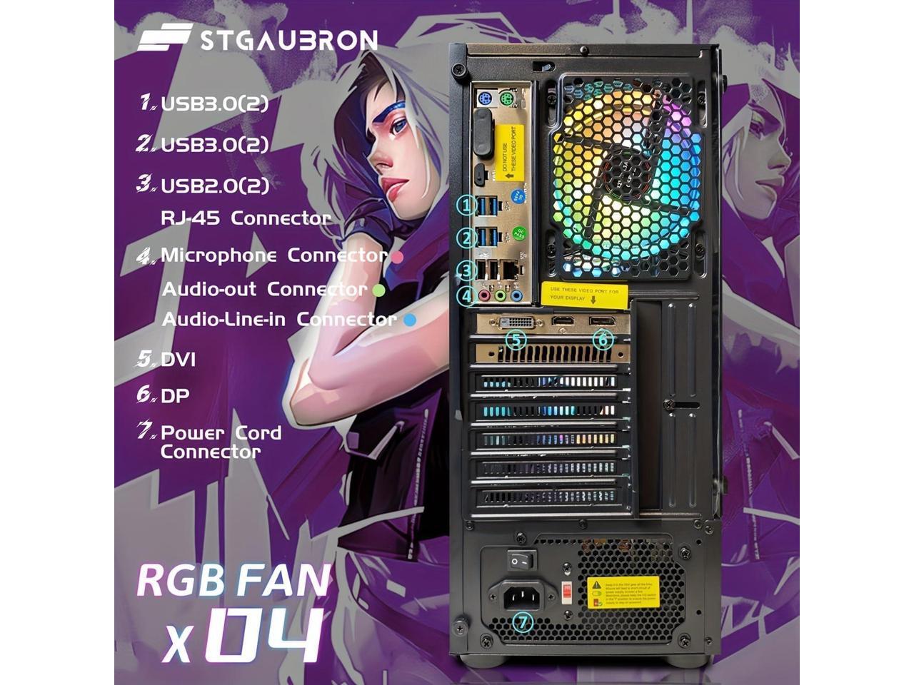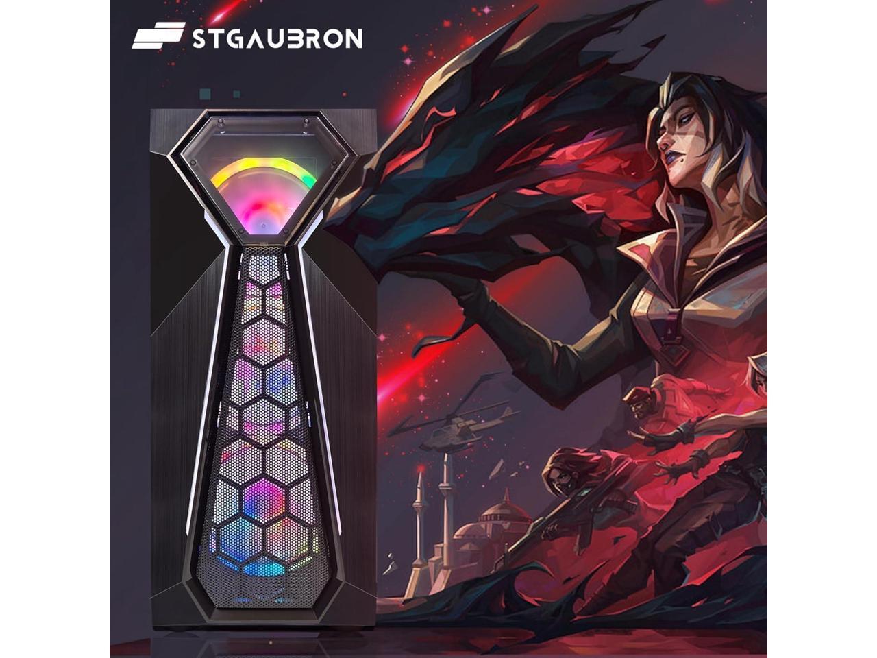 STGAubron Gaming PC Desktop Computer, AMD Ryzen 3 3200G 3.6 GHz, Radeon RX 580 8G GDDR5, 16G RAM, 512G SSD, 600M WiFi, BT 5.0, RGB Fan x 4, Windows 11 Home
