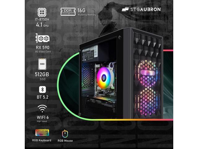STGAubron Gaming PC Computer Desktop, Intel Core i7 8th Gen up to 4.1GHz, Radeon RX 590 8G Graohics, 16G DDR4 RAM, 512G SSD, WIN11H