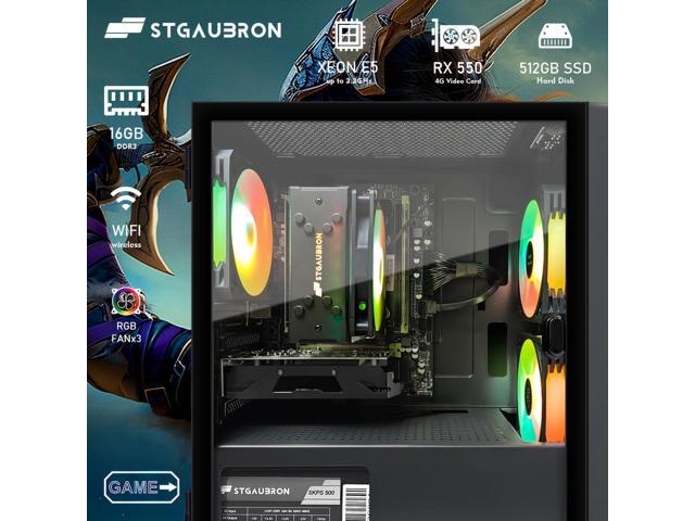 STGAubron Gaming PC Computer Desktop, Intel i7 Xeon E5, Radeon RX 550 4G Graphics, 16GB DDR4 RAM, 512GB SSD, WiFi, BT 5.0, RGB Fan x3, Windows 11 Home, Gaming Computer Tower for Gamer,Streaming
