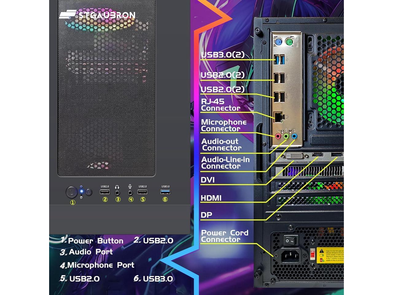 Gaming Desktop Connectivity: This gaming pc comes with: RGB Fan x 3 | 1x RJ-45 | 1x Serial | USB 600M Wi-Fi | USB Bluetooth 5.0 | AMD Radeon RX 550 4G GDDR5 Video Card | 1x HDMI | 1x DisplayPort | 1x DVI
