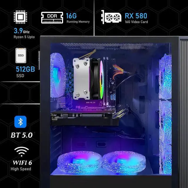 The STGAubron Dual CPU Gaming PC is engineered for high-performance gaming and multitasking, making it ideal for enthusiasts and professionals alike. Powered by dual Intel i7 Xeon E5 processors with speeds up to 3.7GHz, this system delivers exceptional processing power for demanding applications. The Radeon RX 580 8GB graphics card ensures smooth visuals and immersive gameplay. Equipped with 16GB DDR4 RAM and a spacious 1TB SSD, users benefit from rapid load times and ample storage for games, media, and projects. Connectivity is enhanced with USB WiFi 6 and Bluetooth 5.0, while four RGB fans provide both efficient cooling and customizable lighting. Pre-installed with Windows 11 Home, this gaming desktop offers a modern, user-friendly interface and robust security features.