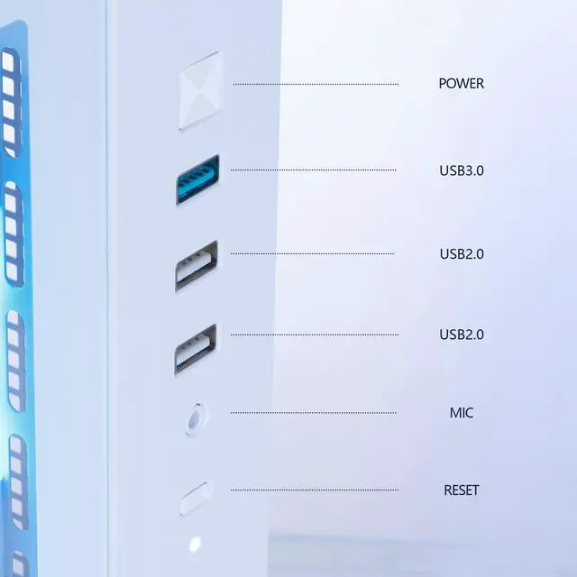 Connectivity:Front - 1 x USB 3.0 | 2 x USB 2.0 | HD-Audio & Mic ; Rear - 4 x USB 3.2 Gen 1 | 4 x USB 2.0 | 1×DisplayPort,1×HDMI | 1×RJ45
