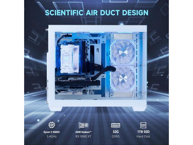 Graphics & Memory:High-Performance Air Cooler Radeon RX 9060 XT 8GB GDDR6 Graphics Card (Brand may vary) Gaming Computer | 32GB DDR5 RAM 6000 MHz Gaming Memory with Heat Spreader.