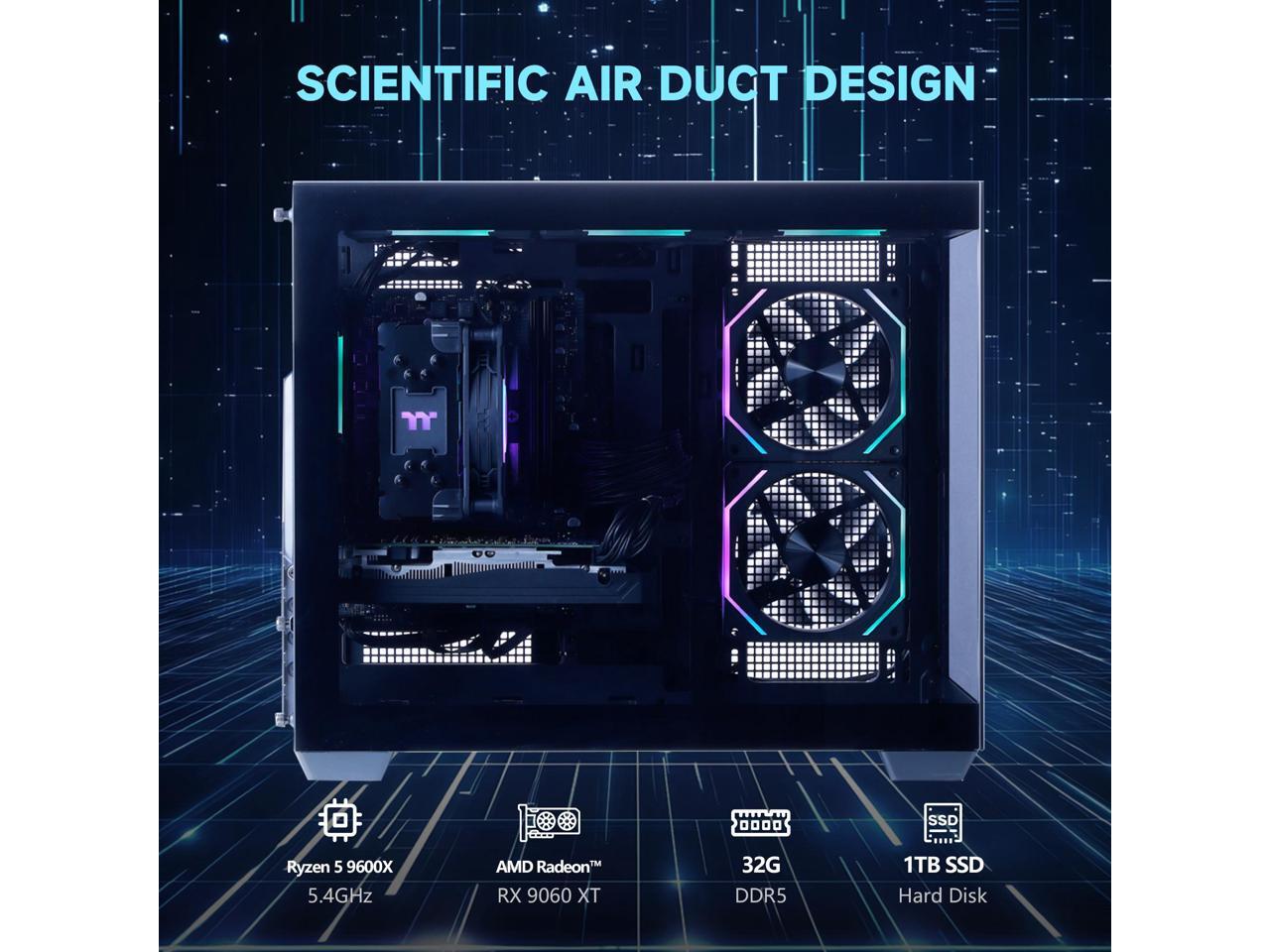 - Graphics & Memory:High-Performance Air Cooler Radeon RX 9060 XT 8GB GDDR6 Graphics Card (Brand may vary) Gaming Computer | 32GB DDR5 RAM 6000 MHz Gaming Memory with Heat Spreader.