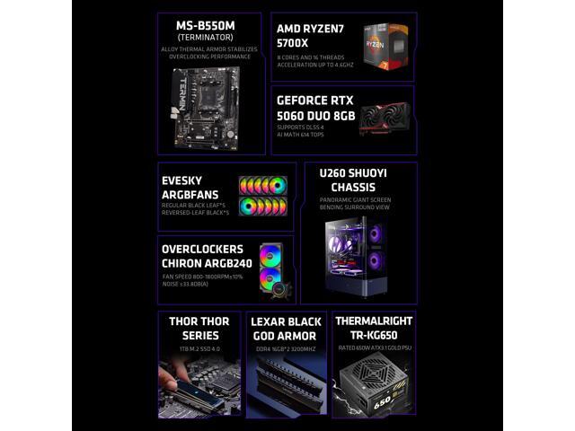 YEAH MAGIC Arcane Z1 Gaming Desktop, Ryzen 7 5700X, NVIDIA RTX 5060 ,32GB DDR4 RAM, 1TB M.2 NVMe SSD ,Windows 11 home,WIFI, Liquid Cooler , ARGB Fans , Pc for Gaming Design Office , Prebuilt Gaming Pc