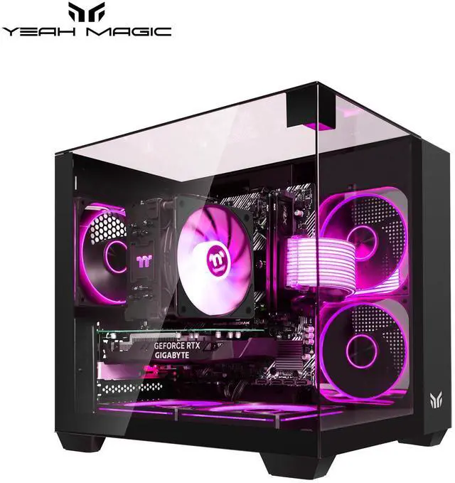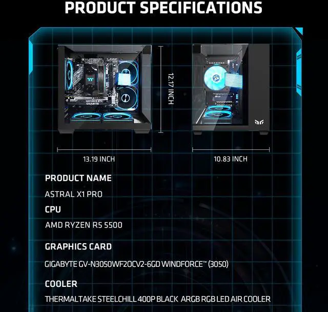 Upgrade your gaming experience with the YEAH MAGIC Astral X1 Pro Gaming Desktop PC. Equipped with an AMD Ryzen 5 5500 CPU (up to 4.2 GHz), this PC delivers powerful performance. It features a GeForce RTX 3050 6GB GPU and 1TB NVMe SSD for swift data access. With 16GB DDR4 RAM 3200MHz, it ensures smooth multitasking. The 650W PSU provides reliable power.