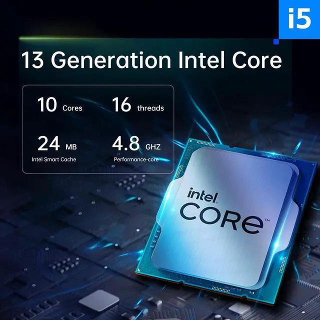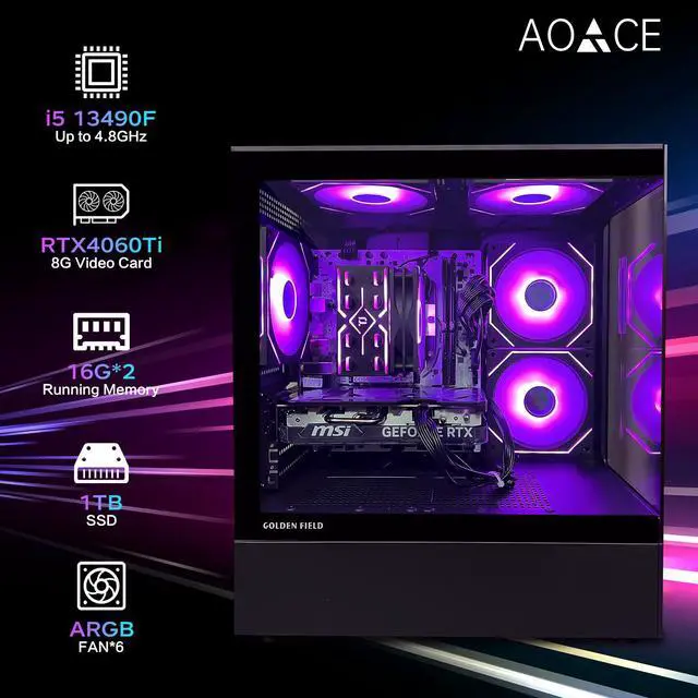 - **Powerful processor**: The AOACE Gaming PC desktop is equipped with the Intel Core i5-13th Gen 13490F processor, which has 10 cores and a maximum turbo frequency of up to 4.6GH z, providing excellent multi-threaded performance and computing capabilities for the computer.