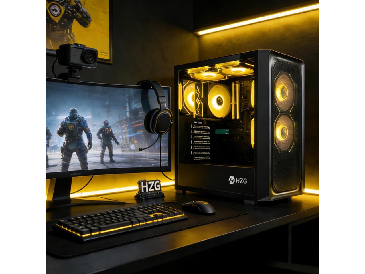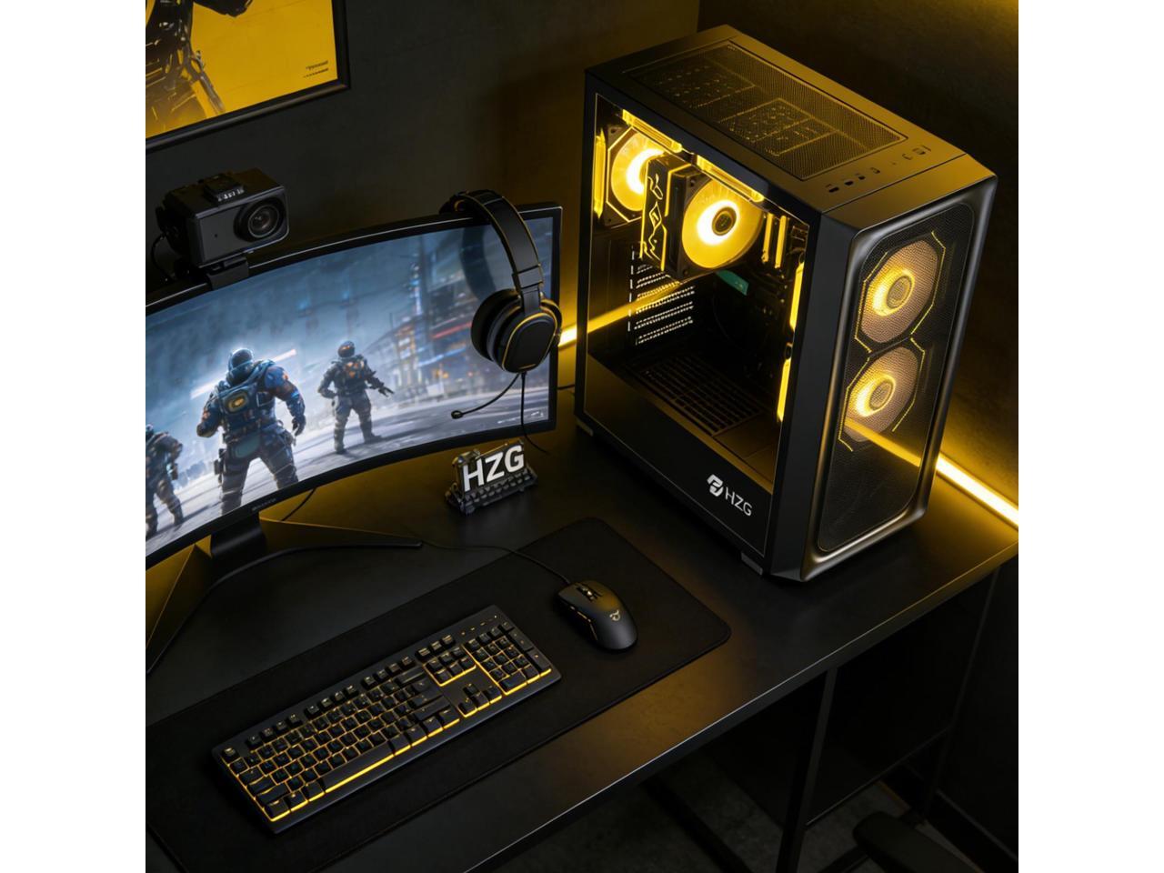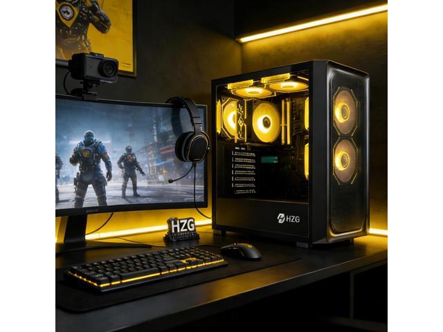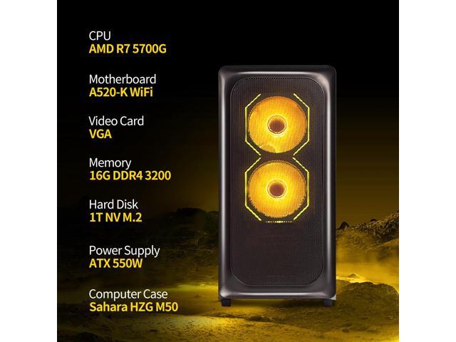 HZG Gaming Desktop Computer PC,AMD Ryzen 7 5700G, AMD Radeon Vega 8,core 3.8GHz (up to 4.6GHz) 16GB RAM and 1TB NVMe M.2 SSD, WiFi6 ARGB Fan, Windows 11 Prebuilt Gaming PC Tower Windows 11