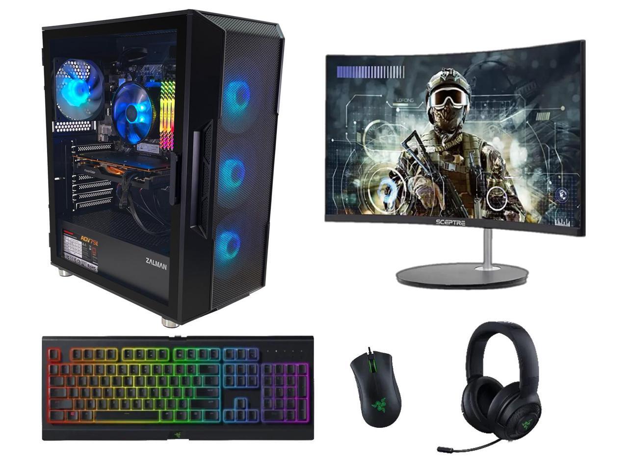 • Peripherals: Razer Gaming keyboard, mouse, and headset. 24" Curved FHD Gaming Monitor with built in speakers.