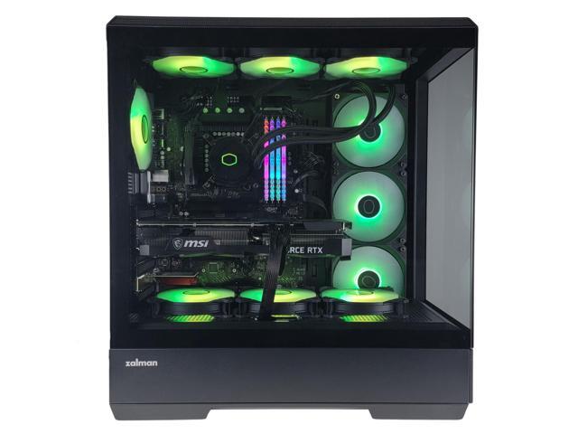 - Shell: Zalman P50 Black : Tool-free hinged panoramic tempered glass panels on three sides provide a premium showcase and effortless access. Equipped with 7 high-performance fans and a 360mm water cooler for exceptional cooling efficiency. Powered by a Cooler Master or equivalent CPU cooler. Front I/O includes 1 USB Type-C, 2 USB 3.0, and a combo Headphone/Microphone jack. Case dimensions: 480(D) x 240(W) x 512(H)mm.