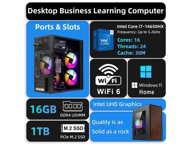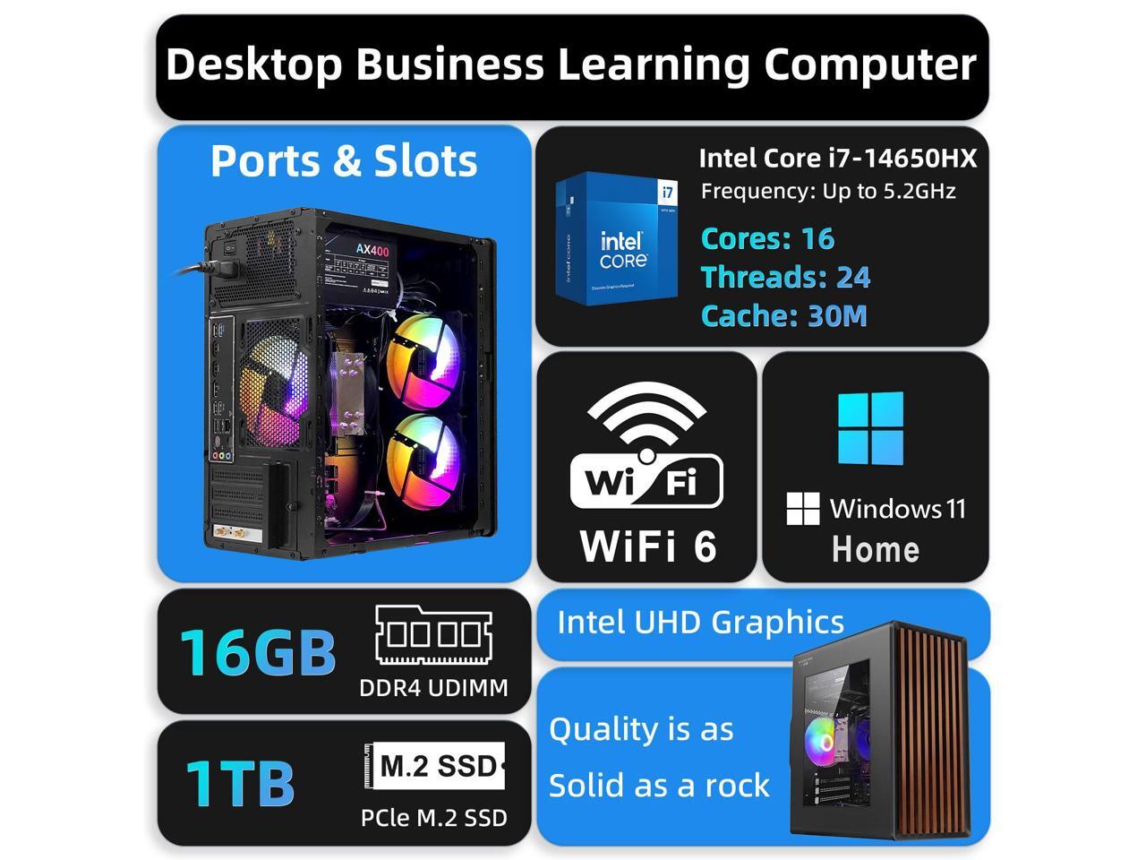 Tower Business Desktop Computer PC - Intel 14th Generation Core i7-14650HX 16 cores and 24 Threads, 16GB DDR4 3200 RAM, 1TB M.2 NVME SSD,Windows 11 Home,WiFiHDMI,RJ-45,Wired Keyboard & Mouse.