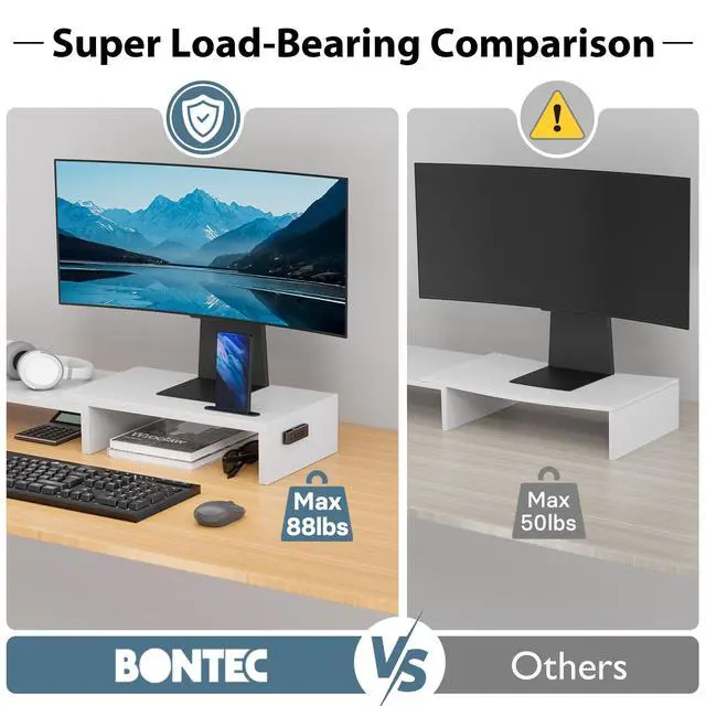 The cable management of our monitor stand can bring you a neat desktop at home/office/living room.