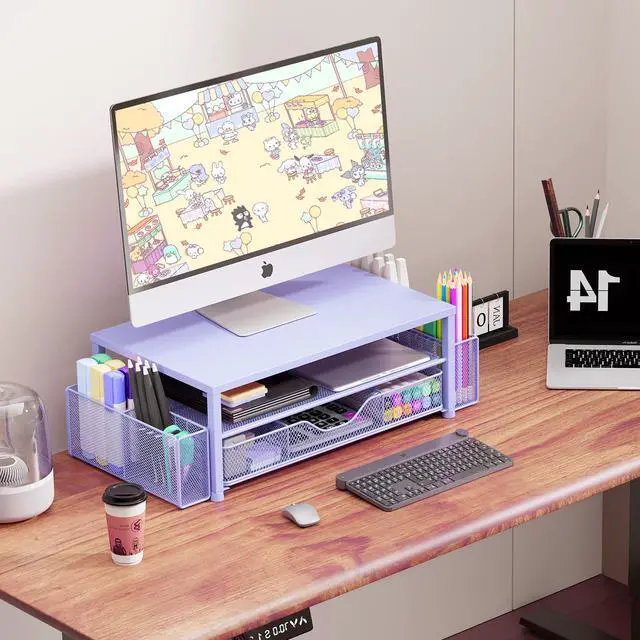 For those who value a neat and organized workspace, this 2-tier monitor stand with 2 hanging pen holders and 1 drawer provides ample storage for your office supplies and desk accessories, helping to keep them neatly categorized and easily accessible.