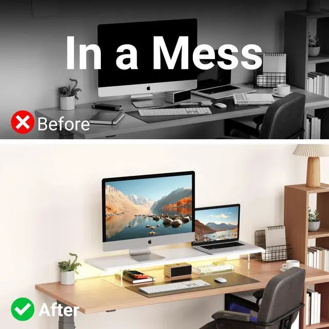 Sleek, modern design raises your monitor to the ideal viewing height while keeping your desk organized.