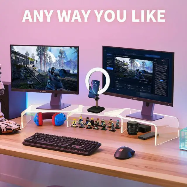 - dual monitors working, live streaming, video editing, graphic designing, coffee making, cosmetics and perfume organization, toys and amiibo display, pet bowls holder and other uses