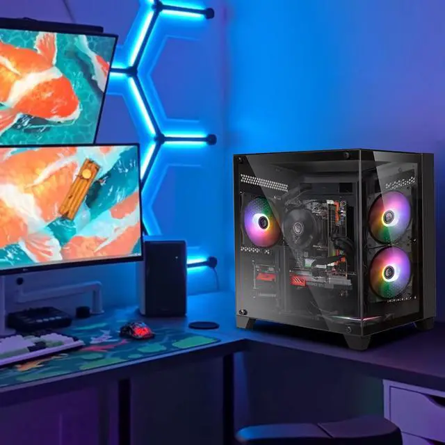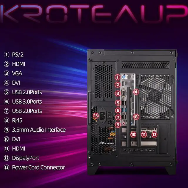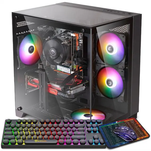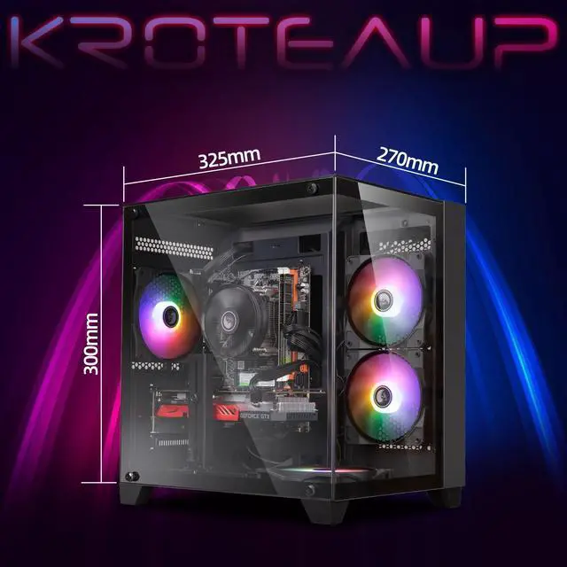 Kroteaup Gaming Tower Computer, Intel Core i7 4th Gen, GeForce GTX 1050 Ti 4G, 16GB RAM, 512GB SSD, WiFi 6, RGB Fanx5, Windows 11 Home