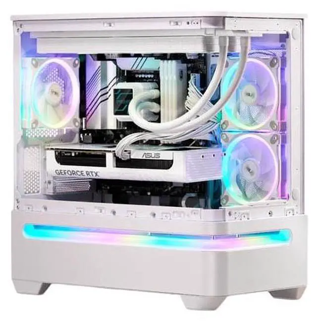 With 32GB of DDR5 memory and a 1TB NVMe solid state drive, the Moonlight provides quick boot times, high-speed data access, and ample storage for games, software, and media. The 360mm liquid CPU cooling system combined with a high-airflow case helps maintain stable temperatures under sustained workloads.